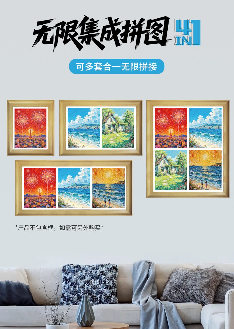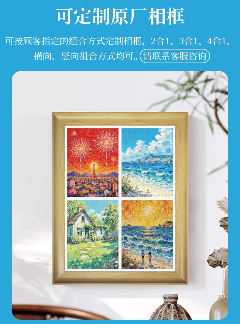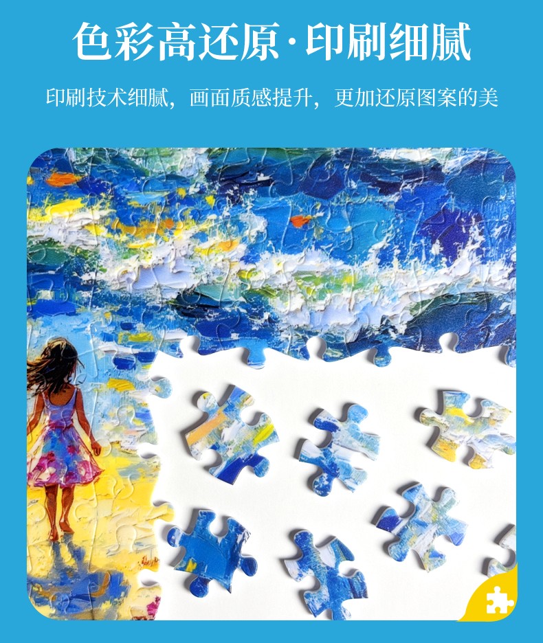 拼圖名稱:四合一塑料平面油畫拼圖 材質:塑料 拼圖尺寸:317*260mm 拼圖片數:1000片 加工方式:廠規、來圖定制 單盒包裝尺寸:185*110*48mm 四合一系列套裝:205*185*110mm
